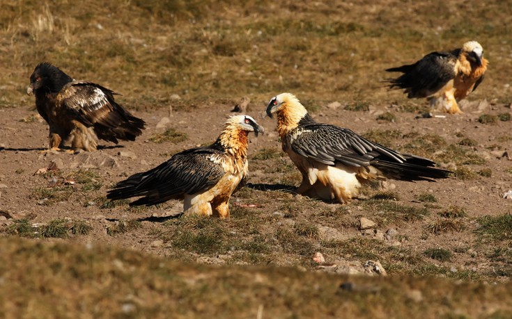 Ο μεγαλοπρεπής γύπας (Gypaetus barbatus) τρέφεται βλέπετε σχεδόν αποκλειστικά με οστά, καταπίνοντάς τα ολόκληρα όταν αυτό είναι δυνατό. Όταν θέλουν σπάσιμο, τα πετάει από ψηλά πάνω σε πέτρες και βράχια μοστράροντας τη νοημοσύνη του.