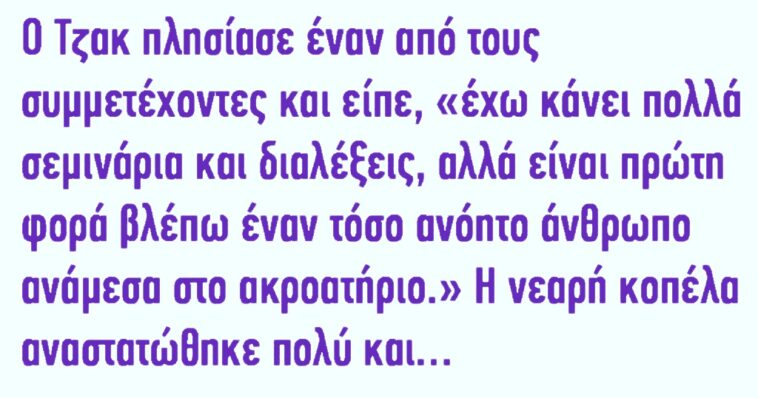 Μετά κοίταξε ξανά την κοπέλα και της είπε: “Έχω κάνει πολλά σεμινάρια και διαλέξεις, αλλά πρώτη φορά βλέπω μια κοπέλα με πράσινα μαλλιά ανάμεσα στο ακροατήριο.” Αυτή την φορά η κοπέλα γέλασε.