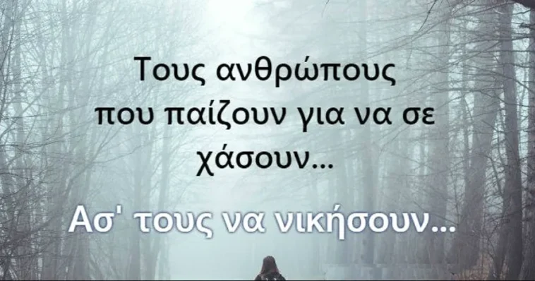Αν λοιπόν έχεις κι εσύ στη ζωή σου ανθρώπους που έλκυσες, επέλεξες, έδωσες και δεν πήρες αυτά που προσδοκούσες, αν έχεις κι εσύ στη ζωή σου ανθρώπους που δεν σέβονται τα όριά σου, που υποτιμούν τη νοημοσύνη σου, που προσβάλλουν την ηθική σου, αν έχεις κι εσύ στη ζωή σου ανθρώπους που παίζουν με τα συναισθήματά σου, με το μυαλό σου και ε την ψυχή σου, ανθρώπους που παίζουν για να σε χάσουν, τότε αυτούς τους ανθρώπους, άστους να κερδίσουν!
