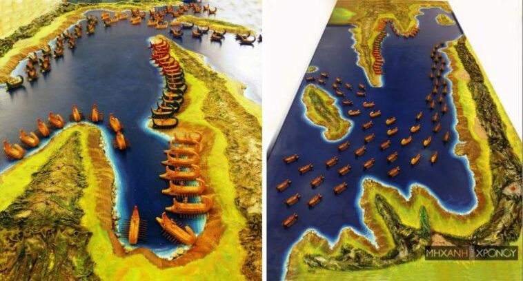 Είναι δύσκολο να αντιληφθούμε τα γεγονότα διαβάζοντας μόνο τις ιστορικές περιγραφές. Πρόσφατα, ο μικροναυπηγός και μελετητής της ναυτικής ιστορίας, Ευάγγελος Γρυπιώτης κατάφερε να οπτικοποιήσει την επική ναυμαχία.