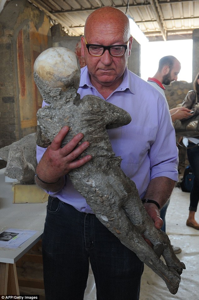 Το παιδί, υπολογίζεται ότι ήταν μόλις τεσσάρων ετών. Δίπλα του βρέθηκε ένα ακόμα, μικρότερης ηλικίας, και δύο σώματα ενηλίκων για τα οποία οι ειδικοί εικάζουν ότι ανήκουν στους γονείς τους. Τα τέσσερα σώματα μαζί με κάποιες δεκάδες ακόμα ετοιμάζονται στον Αρχαιολογικό χώρο της Πομπηίας για την επικείμενη έκθεση Πομπηία και Ευρώπη.