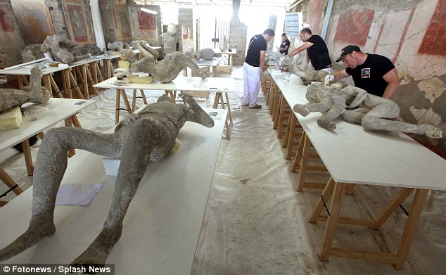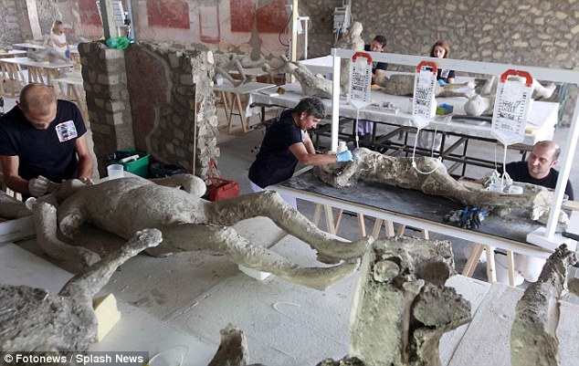 Για να διατηρήσουν τη στάση των θυμάτων, έχυσαν γύψο γύρω και μέσα από τα σώματά τους και μόνο μετά το πέρασμα κάποιων ημερών προχώρησαν στη μετακίνησή τους. Μπορεί να ακούγεται απλή διαδικασία, είναι όμως ιδιαίτερα δύσκολη καθώς ο γύψος πρέπει να είναι αρκετά λεπτός ώστε να είναι ορατές οι λεπτομέρειες και αρκετά συμπαγής ώστε να μπορεί να συγκρατήσει τα λείψανα. Έτσι, οι επιστήμονες αναζητούν νέους τρόπους για να καταφέρουν να διατηρήσουν ανέπαφη τη νεκρόπολη της Καμπανίας.