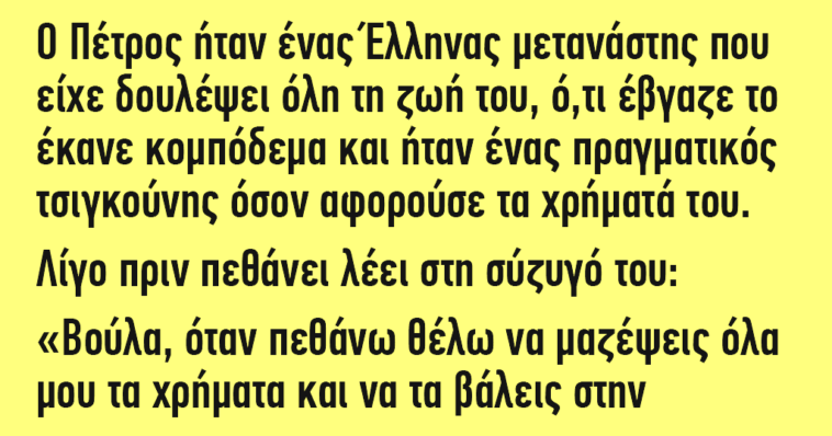 –Βούλα, όταν πεθάνω, θέλω να μαζέψεις όλα μου τα χρήματα και να τα βάλεις στην κάσα μαζί μου.