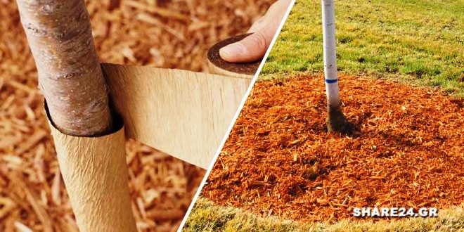 5.Τυλίξτε με μονωτικό υλικό τους κορμούς των νεαρών δέντρων