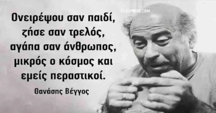 Ο Βέγγος, σπλάχνο από τα σπλάχνα του ελληνικού λαού, υπηρέτησε αυτή την εικόνα αδιαμαρτύρητα, της έδωσε ό,τι είχε και το μόνο που ήθελε ήταν ξάστερο ουρανό και καθαρή ατμόσφαιρα. Γι’ αυτή την επιθυμία έτρεχε και τη φώναζε σαν ικεσία όταν μας έλεγε “καλοί μου άνθρωποι…”.