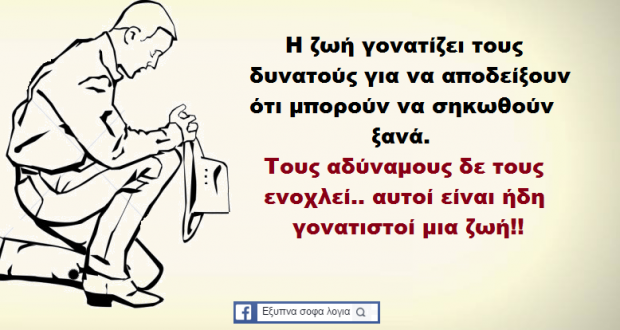 Δεν ξέρω αν πρόκειται για απλά χαστουκάκια, ή για μπούφλες που σε κάνουν να δεις τον ουρανό με τα άστρα, ή μπουνιές που σε ξαπλώνουν μία κι έξω καταγής, φαντάζομαι μπορείς να διακρίνεις τις διαφορές κάθε φορά. Η ουσία είναι πως, ό,τι και να κάνεις για να επιχειρήσεις να τα αποφύγεις, πρόκειται για μία μάχη με ανεμόμυλους, από την οποία θα βγεις τόσο νικήτρια, όσο και ο Δον Κιχώτης. Πρέπει να πάθεις για να μάθεις, και πρέπει να πέσεις, για να μάθεις να ξανασηκώνεσαι. Αυτό είναι το storyline της ζωής σου, όπως και κάθε άλλου γύρω σου, οπότε, αντί να προσπαθείς να αποφύγεις το αναπόφευκτο, μήπως να κάνεις κάτι, για να μάθεις να το διαχειρίζεσαι;
