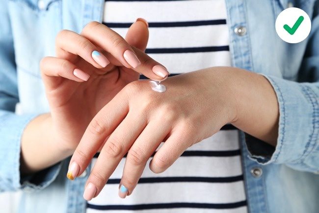Τα χέρια απαιτούν την ίδια φροντίδα με τον λαιμό, γιατί το δέρμα σε αυτή την περιοχή είναι λεπτό. Προσπαθήστε να κάνετε τις δουλειές του σπιτιού με γάντια και να βάζετε συχνά κρέμα χεριών.