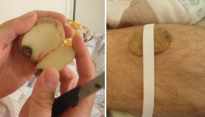 Οι ωμές πατάτες δρουν κατά της φαγούρας και των φλεγμονών, ακριβώς δηλαδή ό,τι χρειάζεστε σε περίπτωση που σας τσιμπήσει αράχνη. Τυλίξτε μια φέτα ωμή πατάτα σε έναν επίδεσμο ή ένα λεπτό ύφασμα. Τρίψτε την απαλά πάνω στην περιοχή του τσιμπήματος για μερικά λεπτά.