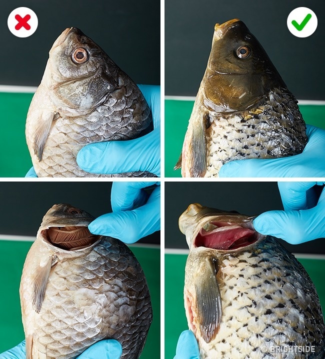 Πώς να το ελέγξετε: Τα μάτια και το δέρμα των ψαριών πρέπει να έχουν ομοιόμορφο χρώμα, τα λέπια να είναι ομοιόμορφα και τα βράγχια να είναι κόκκινα. Τα μπαγιάτικα ψάρια θα έχουν ανώμαλα λέπια, σκούρα βράγχια και θα μυρίζουν άσχημα. Μερικοί πωλητές μπορεί να κρύψουν αυτά τα σημάδια: ξύστε τα λέπια και κόψτε τα κεφάλια και τα πτερύγια. Το κρέας πρέπει να είναι κόκκινο ή ροζ, όχι καφέ.