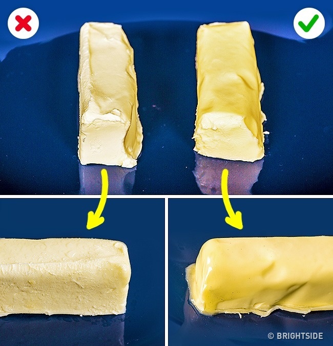 Πώς να το ελέγξετε: Βάλτε ένα κομμάτι βούτυρο σε βραστό νερό. Θα λιώσει γρήγορα και θα σχηματίσει ένα στρώμα στην επιφάνεια. Η μαργαρίνη θα μετατραπεί σε κομμάτια.