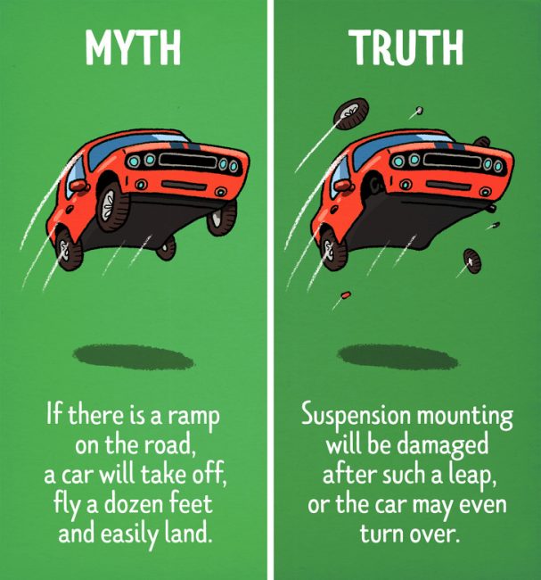 11. Μύθος: Αν υπάρχει κάποια ράμπα στο δρόμο, ένα αυτοκίνητο θα αναπηδήσει, θα πετάξει καμιά δωδεκαριά πόδια και θα προσγειωθεί εύκολα.