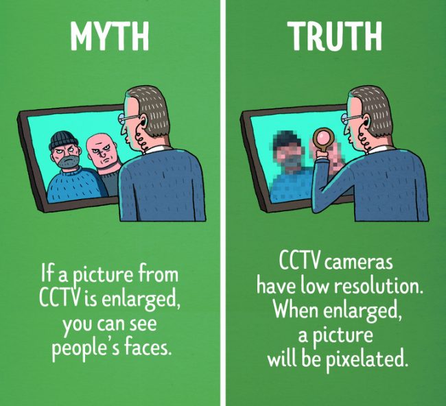 1. Μύθος: Αν μία εικόνα από κάμερα παρακολούθησης μεγεθυνθεί, μπορείς να δεις τα πρόσωπα ανθρώπων.