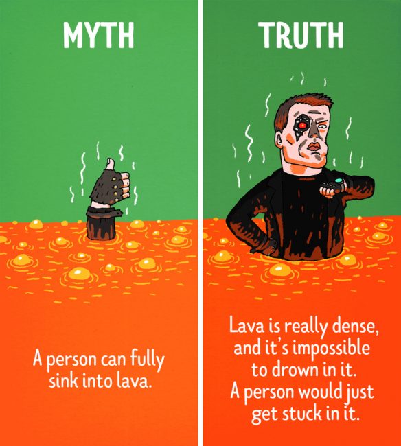 8. Μύθος: Ένα άτομο μπορεί να βυθιστεί ολόκληρο μέσα στη λάβα.
