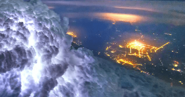 Εδώ φαίνεται ένα σύννεφο που φωτίζεται από αστραπές μεταξύ του Πεκίνου και της Σαγκάης.