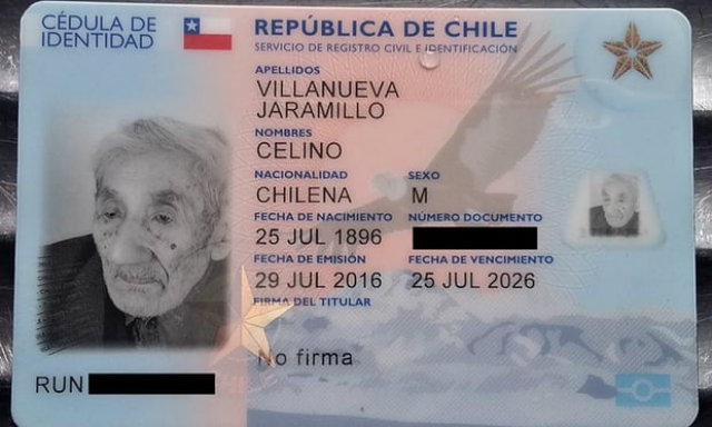 Ο Σελίνο που δεν παντρεύτηκε ποτέ ούτε απέκτησε παιδιά έχασε το πιστοποιητικό γέννησής του, αλλά έχει μια επίσημη κάρτα που του παρέδωσε προσωπικό ο υπουργός δικαιοσύνης της Χιλής το 2016 και αποδεικνύει την ηλικία του.