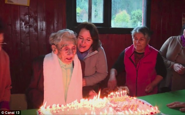 Ο 121χρονος Σελίνο Βιλανουέβα Χαραμίλο σβήνει τα 120 κεράκια της τούρτας γενεθλίων του.
