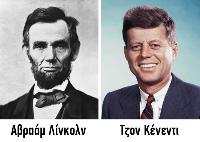 Υπάρχουν περίεργες συμπτώσεις στις βιογραφίες των δύο Αμερικανών προέδρων: Αβραάμ Λίνκολν και Τζον Κένεντι. Εδώ είναι μερικές μόνο από αυτές: