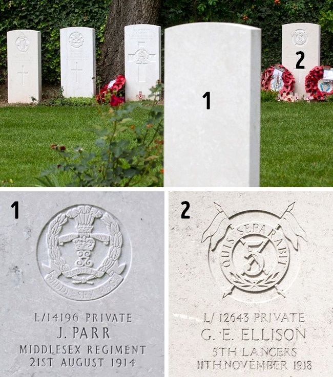 Οι τάφοι του πρώτου και του τελευταίου Βρετανού στρατιώτη που σκοτώθηκαν στον Πρώτο Παγκόσμιο Πόλεμο, βρίσκονται 6 μέτρα ο ένας από τον άλλο. Οι επιτύμβιες στήλες τους βλέπουν η μια την άλλη αλλά σε καμία περίπτωση δεν έγινε σκόπιμα. Ήταν σύμπτωση.
