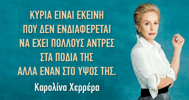 “Κυρία είναι εκείνη που δεν ενδιαφέρεται να έχει πολλούς άντρες στα πόδια της, αλλά έναν στο ύψος της.” Καρολίνα Χερρέρα