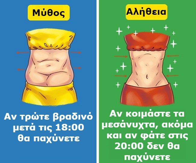 Αν θέλετε να χάσετε βάρος (ή απλά να παραμείνετε σε φόρμα), είναι σημαντικό να τρώτε βραδινό 3-4 ώρες πριν κοιμηθείτε. Έτσι, αν πάτε για ύπνο στις 23:00, μπορείτε να απολαύσετε το δείπνο στις 19:00 και αν κοιμάστε τα μεσάνυχτα, το τελευταίο γεύμα είναι αποδεκτό στις 20:00.