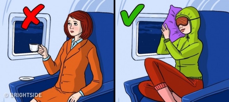 Όταν είστε σε ένα αεροπλάνο, επιλέξτε άνετα ρούχα με αναπνεύσιμα υφάσματα. Θα βοηθήσουν πολύ όταν προσπαθείτε να κοιμηθείτε. Επίσης, να θυμάστε ότι είναι καλύτερο να φορέσετε ρούχα που είναι χαλαρά και άνετα, για να αποτρέψετε την ανάπτυξη θρόμβωσης βαθιάς φλέβας. Τα επίσημα ρούχα μπορεί να είναι μια κακή επιλογή στην περίπτωση αυτή. Προσπαθήστε να αποφύγετε την καφεΐνη, ακόμα και κατά τη διάρκεια της ημέρας, για να κοιμηθείτε τη νύχτα. Θυμηθείτε να φέρετε μαζί σας τα ωτοασπίδες και μια ελαφριά μάσκα ύπνου.