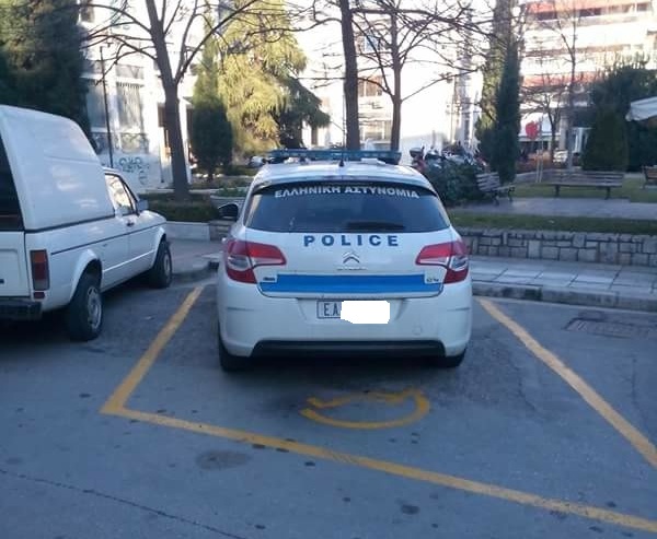 Περιπολικό στη Λάρισα παρκάρει σε θέση αναπήρων. Γιατί πάνω από όλα… ο νόμος.