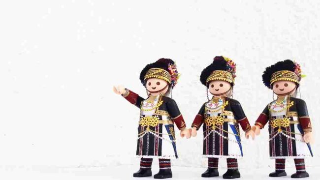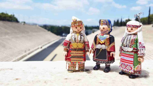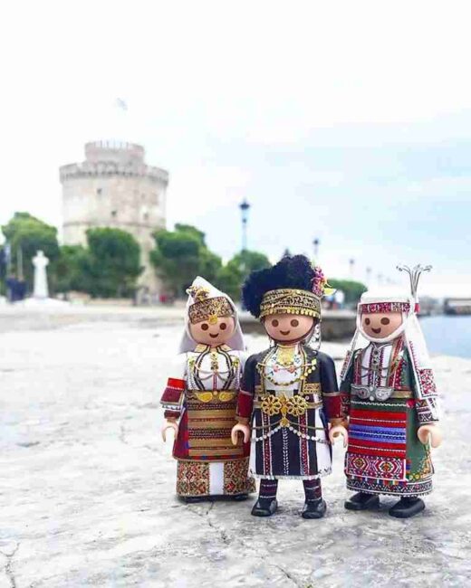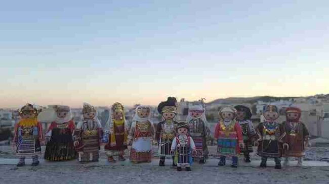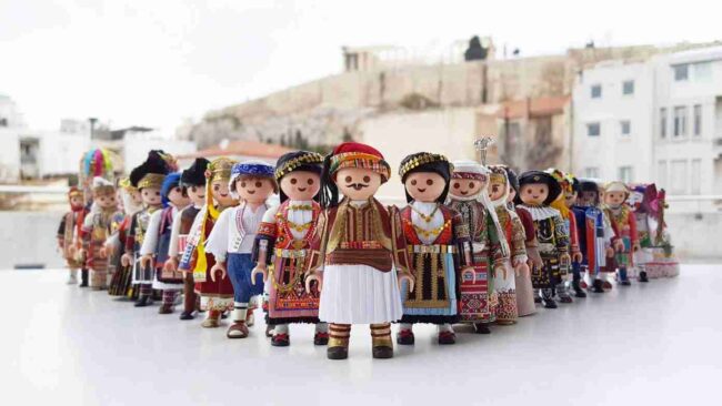 Κοίτα να δεις πόσο πολυάσχολη μπορεί να είναι η καθημερινότητα ενός 23χρονου. Τον ρωτάω αν θα είχε χρόνο να δουλέψει για την ίδια την Playmobil, να τους δίνει τέτοιες ιδέες. «Γιατί όχι;» λέει. «Αλλά ως εκτέλεση παραγωγής δεν ξέρω κατά πόσο θα ήταν εφικτό να αποδοθεί τόση λεπτομέρεια με πλαστικά υλικά. Πώς θα ήταν τα κεντήματα, τα μαντίλια, όλα αυτά, σε πλαστικό; Θα έμοιαζαν, αλλά δεν θα ήταν παραδοσιακές φορεσιές».