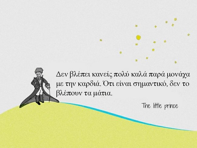 «Να το μυστικό μου. Είναι πολύ απλό μυστικό: Μόνο με την καρδιά βλέπεις αληθινά. Την ουσία δεν τη βλέπουν τα μάτια».