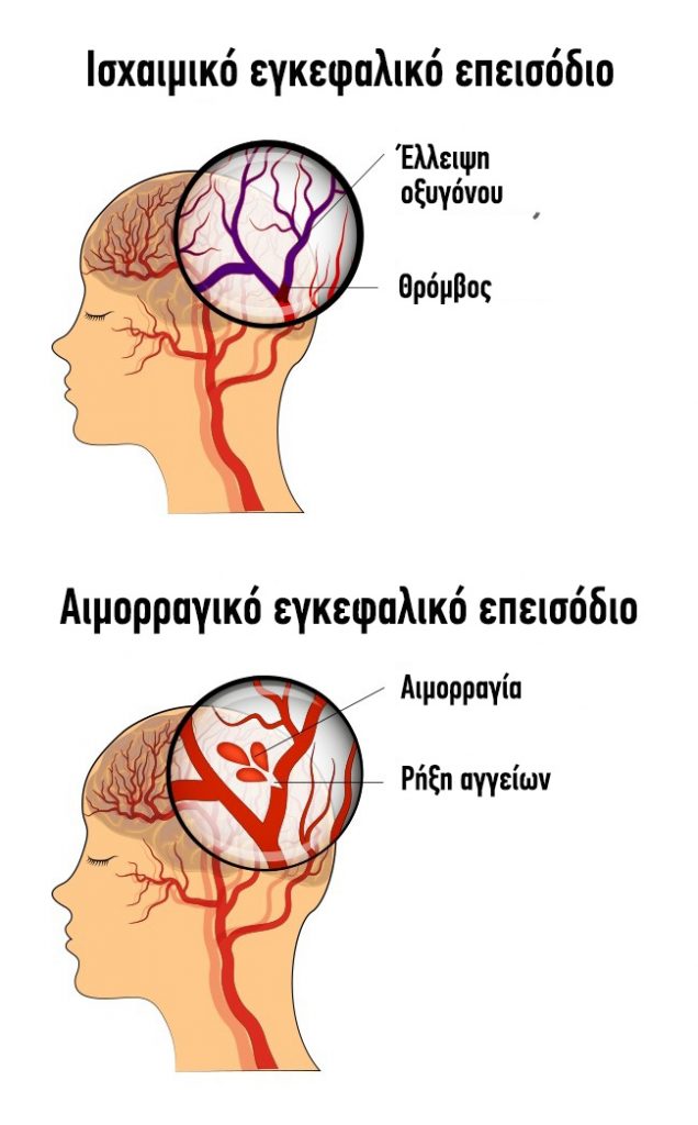Αιμορραγικό εγκεφαλικό επεισόδιο: η αιτία αυτού του εγκεφαλικού είναι η ρήξη των εγκεφαλικών αγγείων, η οποία προκαλεί οίδημα και πίεση.