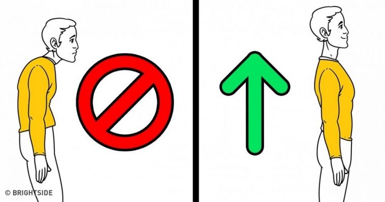 Προσπαθήστε να μην σκύβετε και να κάθεστε σωστά, με την πλάτη ίσια, τα πόδια στο πλάτος των ώμων, ελαφρώς προς τα μπροστά και με τους ώμους πίσω. Αυτή είναι η βέλτιστη θέση για την σπονδυλική στήλη ώστε να κρατήσετε σωστά το σώμα. Μην βάζετε τα χέρια στην τσέπη μιας και αυτό θα σας κάνει να σκύψετε.