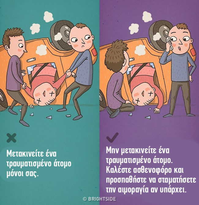 Εάν συμβεί κάποιο ατύχημα στο δρόμο, μην μετακινήσετε έναν τραυματισμένο και σίγουρα μην προσπαθήσετε να τον τραβήξετε μόνοι σας από το αυτοκίνητο. Θα επιδεινώσετε τα πράγματα. Αυτός ο κανόνας μπορεί να παραβιαστεί μόνο στις πιο ακραίες καταστάσεις – για παράδειγμα, αν το όχημα έχει πιάσει φωτιά. Αυτό που πρέπει να κάνετε αντ ‘αυτού είναι: