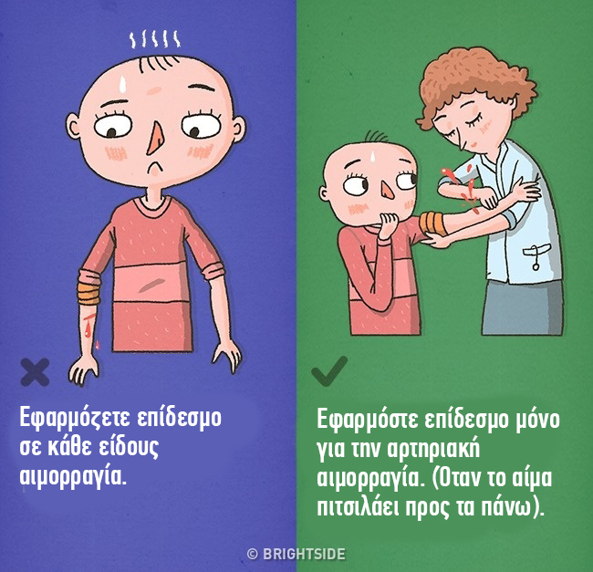 7. Μην εφαρμόζετε ένα επίδεσμο σε μια πληγή εάν δεν υπάρχει αρτηριακή αιμορραγία.
