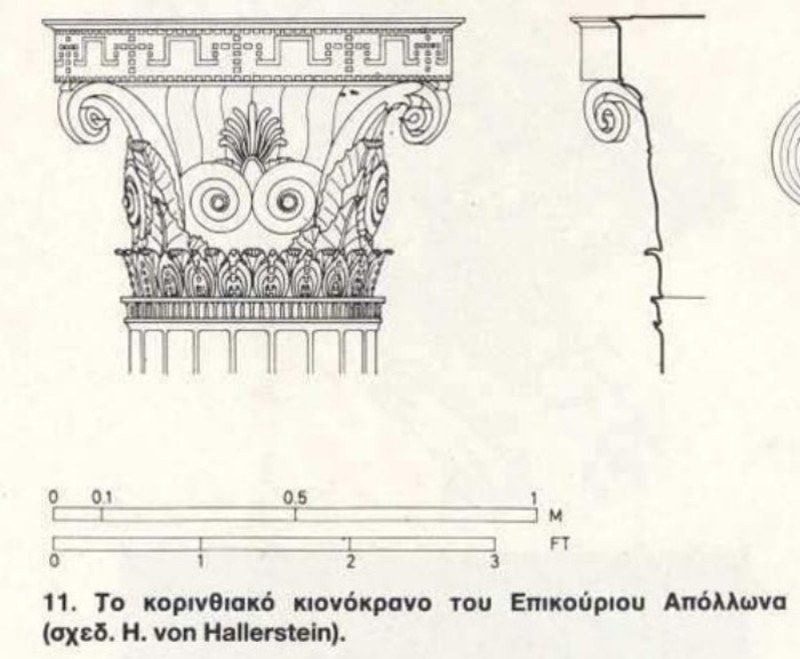Στο νότιο τμήμα όπου βρίσκεται το άδυτο, οι δύο τελευταίοι ιωνικοί κίονες του σηκού στέκονται στο μακρινό άκρο λοξών τοίχων, ενώ ανάμεσά τους βρίσκεται ένας κορινθιακός κίων, μόνος στο κέντρο του ναού. Το κιονόκρανο του κίονα αυτού αποτελεί «το αρχαιότερο σωζόμενο δείγμα και θεωρείται πρότυπο για όλα τα «Κορινθιακά» μνημεία του ελληνικού, ρωμαϊκού και μεταγενέστερων πολιτισμών».