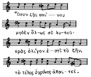Πρόκειται για τη σύνθεση «Ο Επιτάφιος του Σεικίλου», το οποίο αποδίδεται στον Σείκιλο που έζησε στις Τράλλεις της Μικράς Ασίας, περίπου κατά τον 2 αιώνα π.Χ.