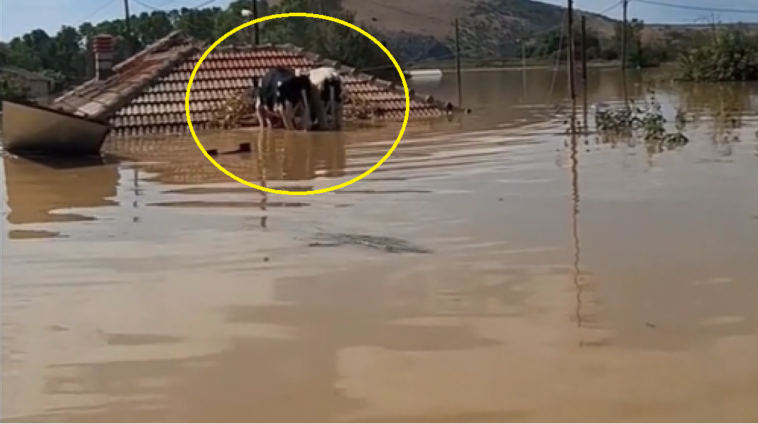 Καθώς διέσωζαν ανθρώπους ζώα κάθε είδους από τις περιοχές της Καρδίτσας οι οποίες είχαν κυριολεκτικά καλυφθεί με τα νερά της καταιγίδας Ντάνιελ στο χωριό Μεταμόρφωση βρήκαν δυο αγελάδες, οι οποίες προφανώς κολυμπώντας, κατάφεραν να φτάσουν σε ταράτσα σπιτιού πάνω στα κεραμίδια. Οι διασώστες βρήκαν πολλά σκυλιά τα οποία μάζεψαν μέσα από τα νερά…