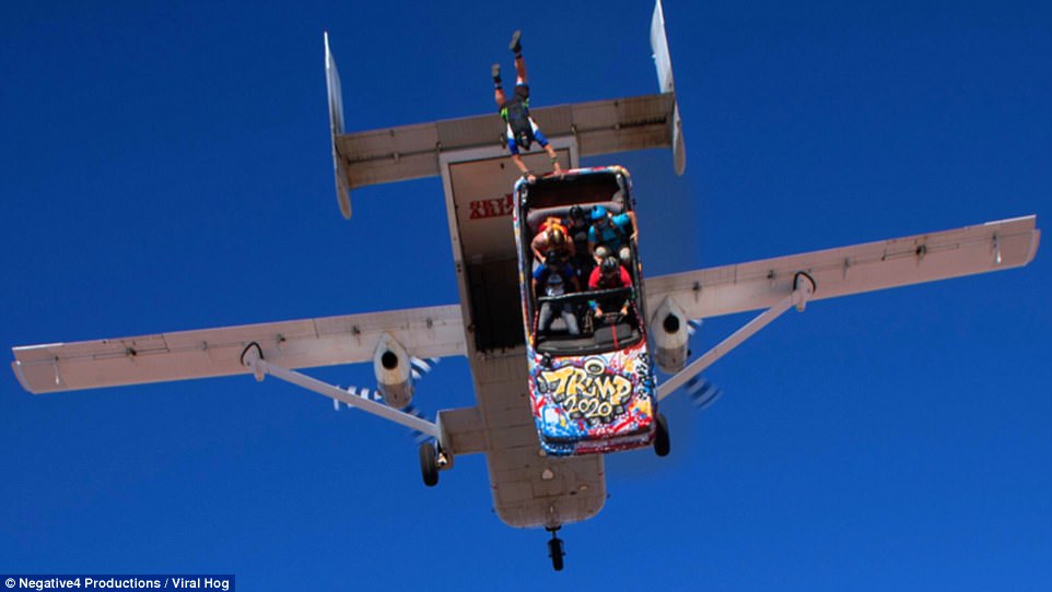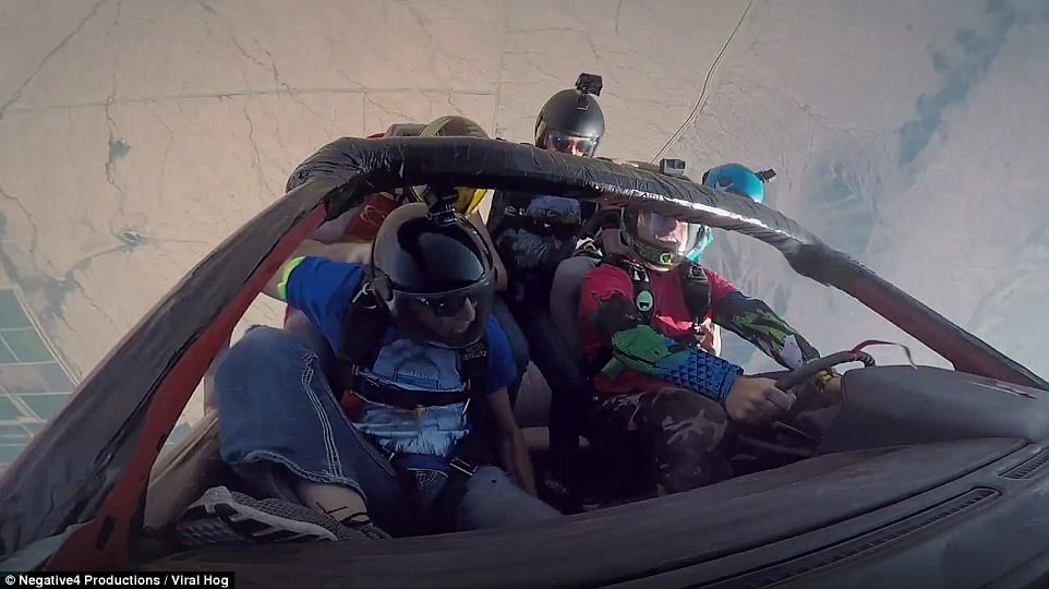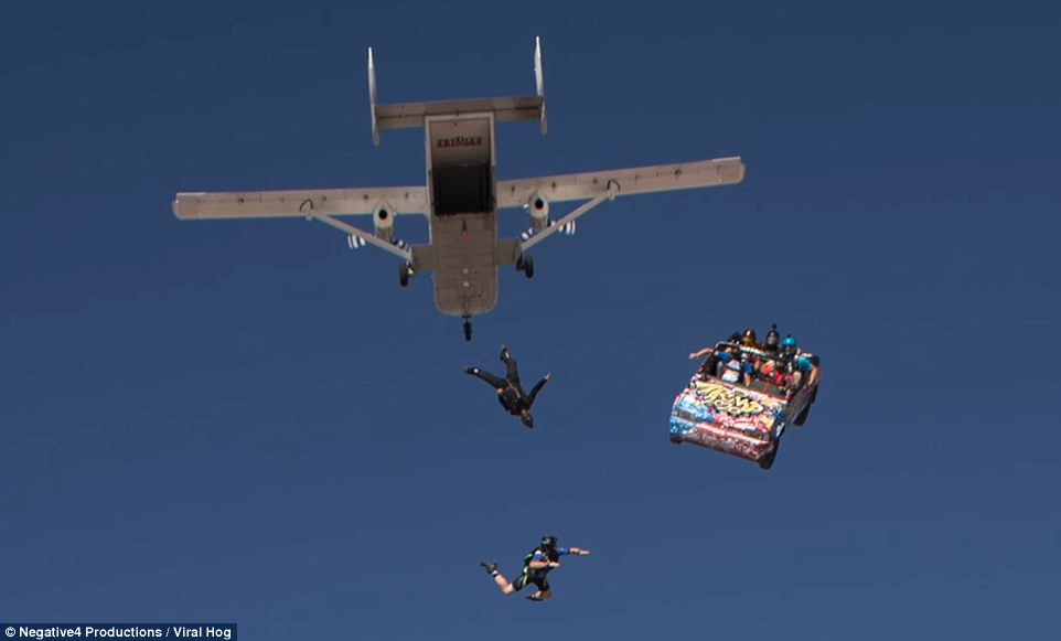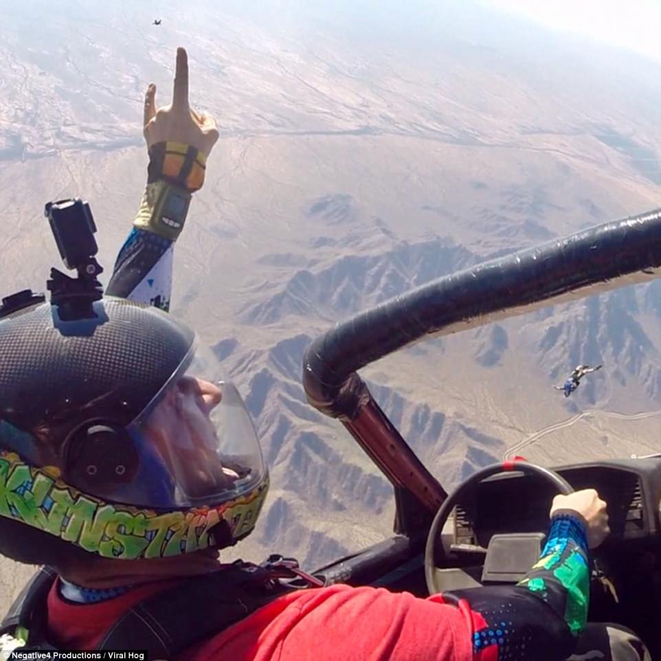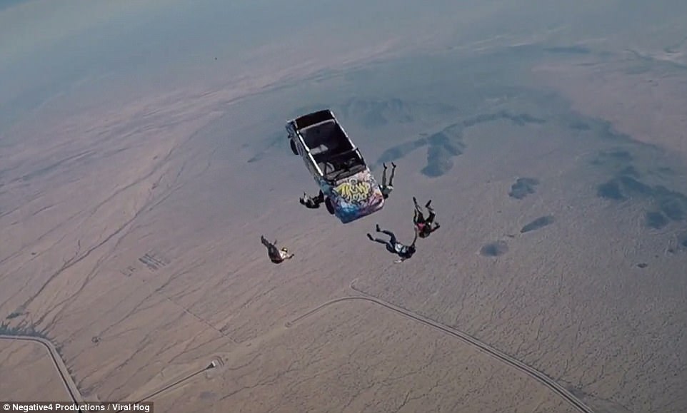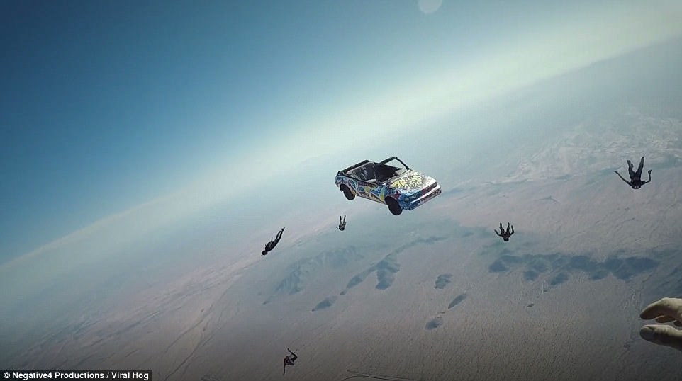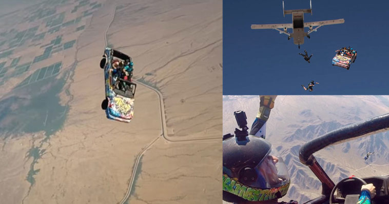 Μόλις κυκλοφόρησε ένα βίντεο που δείχνει μια ομάδα τολμηρών αλεξιπτωτιστών να οδηγούν ένα αυτοκίνητο έξω από το αεροπλάνο και να πετούν με αυτό για 15 δευτερόλεπτα.