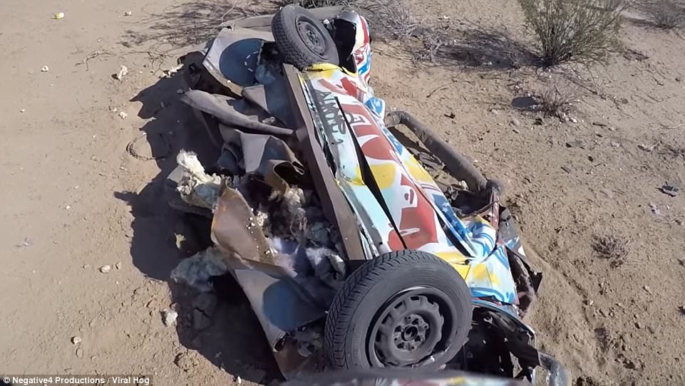 Τα συντρίμμια του αυτοκινήτου στο τέλος.