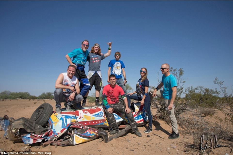 Το αυτοκίνητο έπεσε και κάηκε, καθώς η ομάδα κατέβαινε με τα αλεξίπτωτά της. Η ομάδα ήταν υπερήφανη για το αποτέλεσμα και φωτογραφήθηκε με τα συντρίμμια.