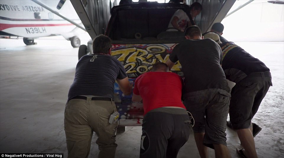Το αυτοκίνητο βγαίνει από το αεροπλάνο μαζί με τους 5 τολμηρούς φίλους που αποφάσισαν να κάνουν αυτό το κόλπο τον περασμένο Αύγουστο.
