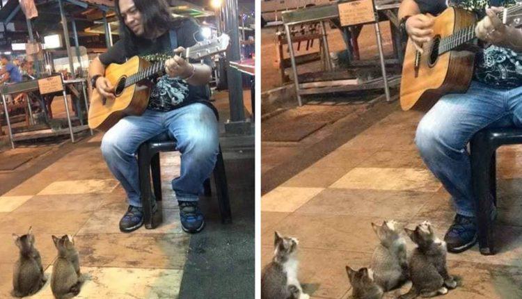 Αυτός ο Μαλαισιανός τραγουδιστής δρόμου ήταν έτοιμος να σταματήσει, αφού δεν μαζεύτηκε και πολύς κόσμος γύρω του για να τον ακούσει. Μόλις άρχισε να παίζει για πλάκα, εμφανίστηκε το πιο γλυκό κοινό… 4 γατάκια τριών μηνών εμφανίστηκαν για να τον υποστηρίξουν.
