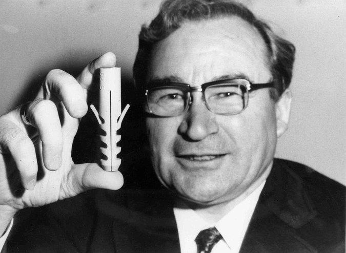Έντεκα χρόνια αργότερα, αντιμετώπισε ένα συνηθισμένο πρόβλημα: πώς θα μπορούσε να σταθεί μια βίδα στήριξης σε έναν τοίχο. Έφτιαξε έτσι μια «υποδοχή» από νάυλον μέσα στην τρύπα του τοίχου και ενσωμάτωσε εκεί τη βίδα. Αυτή ήταν η ανακάλυψη του ούπα – το οποίο παράγει σε μαζικές ποσότητες ακόμη και σήμερα η εταιρεία του, που φέρει το όνομά του.