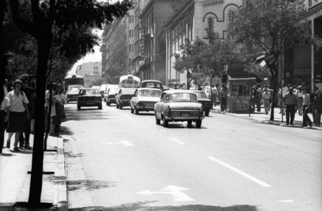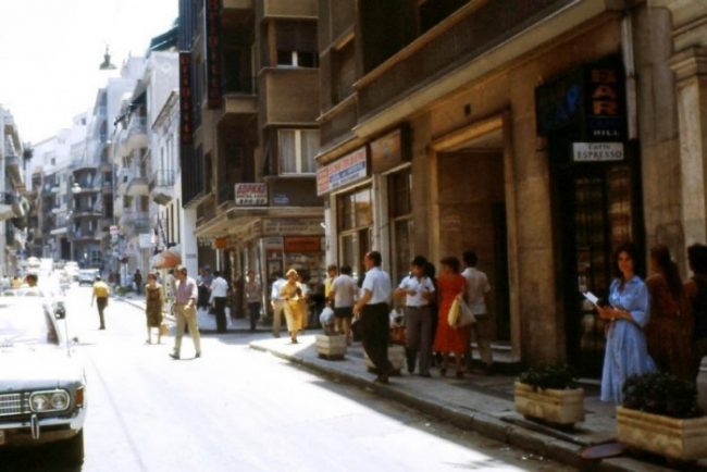 Ψηλά κτίρια και πολυκατοικίες κάνουν την εμφάνιση τους παντού, αλλά νέφος δεν υπήρχε. Δεν το σκεφτόσουν να βγεις βόλτα βράδυ στην Ομόνοια για να φας ένα σουβλάκι, το οποίο κόστιζε 2 δραχμές.