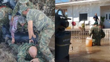 in Επικαιρότητα Μπράβο σου παλικάρι μου: Πεζοναύτης ξαπλώνει στις λάσπες για να πατήσουν πλημμυροπαθείς ηλικιωμένοι