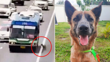 in Pet Ο οδηγός λεωφορείου σταματά στον αυτοκινητόδρομο για να πάρει ένα χαμένο σκυλί. Δεν μπορούσα να το αφήσω εκεί