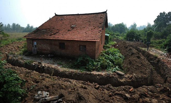 in Ιστορίες Ηλικιωμένο ζευγάρι αρνήθηκε να πουλήσει την ιδιοκτησία του και καποιος με έναν εκσκαφέα δημιούργησαν μια τάφρο γύρω από το σπίτι τους (Εικόνες)