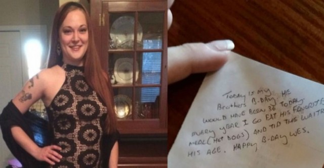 in Ιστορίες Ένας άνδρας άφησε 36$ φιλοδώρημα και έφυγε γρήγορα αφήνοντας πίσω του ένα σημείωμα και η σερβιτόρα που τα βρήκε ξέσπασε σε λυγμούς