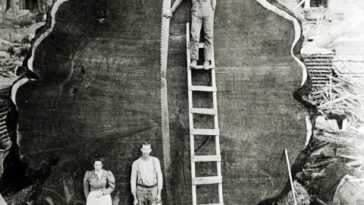 in Ιστορίες, Περιβάλλον Υλοτόμοι ποζάρουν μπροστά στο «κατόρθωμά» τους. Έκοψαν μια σεκόγια, το μεγαλύτερο και γηραιότερο δέντρο του πλανήτη.