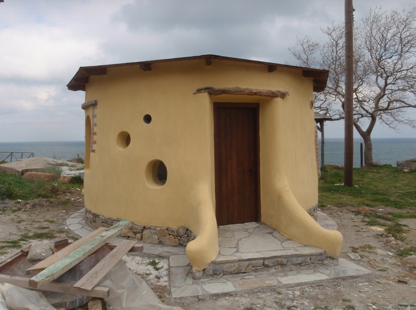 Δύο άτομα, ο Κώστας και ο Στέλιος, με αγάπη για τα φυσικά υλικά έχτισαν ένα μικρό σπιτάκι από στιβαχτό πυλό και κόστος που  που δεν ξεπερνούσε τα 1.500 ευρώ.