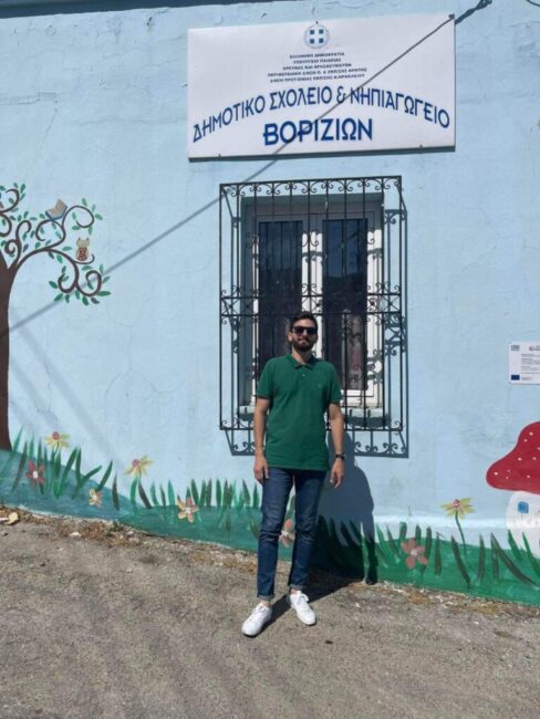 “Όταν βρέθηκα στα Βορίζια πριν από περίπου 5 χρόνια υπήρχε παραμέληση όχι μόνο στο κτήριο και στον αύλειο χώρο, αλλά και γενικότερα. Ξεκίνησα πρώτα την προσπάθεια να διαμορφώσουμε ένα όμορφο κτιριακό συγκρότημα, να επισκευαστούν οι φθορές, να ζωγραφιστεί, να φτιαχτεί όμορφα ο αύλειος χώρος και σιγά σιγά, διαθέτοντας πολύ προσωπικό χρόνο, σε συνεργασία με την τοπική κοινότητα και με τη δημοτική αρχή, έγιναν οι παρεμβάσεις. Διαμορφώθηκε ένας όμορφος χώρος και από κει και μετά κάθε χρόνο μαζί με τους συναδέλφους που ερχόντουσαν, υλοποιούσαμε και κάτι διαφορετικό.