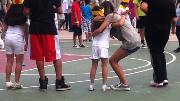 Η πρώτη επαφή των παιδιών της έκτης με τα παιδιά της πρώτης γίνεται στο προαύλιο, με την επίβλεψη των εκπαιδευτικών της Φυσικής Αγωγής.